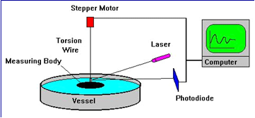 The ring tensiometry is based on pulling a ring out of a liquid and measuring the weight of the attached liquid meniscus.