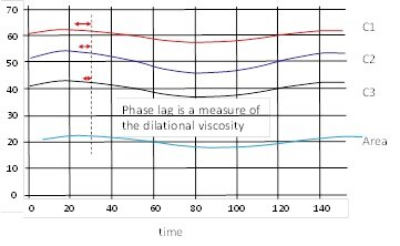 From such experiments we can determine the dilation elasticity and viscosity. The phase lag between g(t) and the area change is a measure of the dilational viscosity.