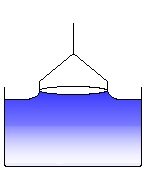 The ring touches the liquid surface. The measured force decreases slightly due to buoyancy of the ring. (2)