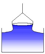 Further pulling the ring leads to a rupture of the meniscus. This process is to be avoided and the software cares about that the ring, after the maximum force has been passed, is moved back into the liquid again. (9)