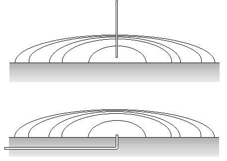 Fig. V.6 Sessile drop with growing volume; liquid delivered via a thin capillary from top or bottom, respectively