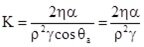 The parameters in Eq. (V.17) are: r - density difference between liquid and air, h - viscosity of the liquid, g - surface tension of the liquid. The coefficient K stands for the porosity of the powder in the tube and has to be determined separately. Traditionally it is determined by a separate experiment using a liquid that wets the particles perfectly, for example hexane. Then the porosity coefficient k results to